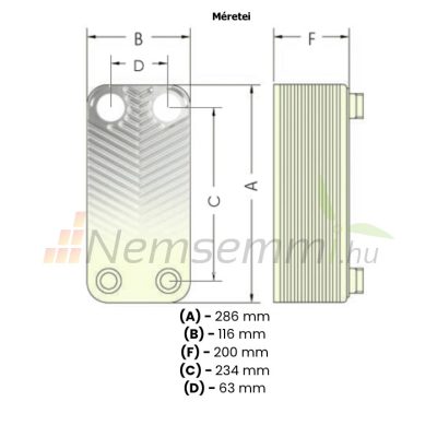 • Lemezes hőcserélő 80 lemezes 286 mm hosszú 450kW 4x1 1/4” külső csatlakozással
