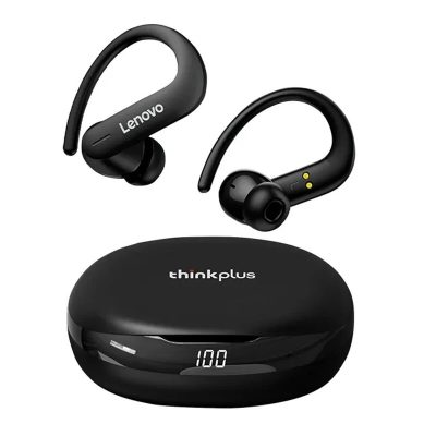 Lenovo T50 - vezeték nélküli fülhallgató sport vagy üzleti felhasználásra - fülhorog kialakítás, 5 óra használat, BT5.2 - fekete