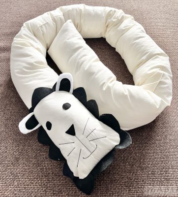Leo – Oroszlán szundi hengerpárna babáknak és szülőknek | 200 cm, pamut huzattal, antiallergén töltettel