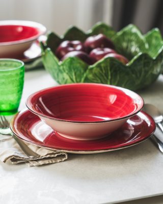 A tál strapabíró kőagyagból készült, ami garantálja, hogy hosszú távon is élvezheted szépségét és funkcionalitását. A kézzel festett zöld levél minta természetességet és stílust kölcsönöz az edénynek, így minden étkezés egy valódi vizuális élmény lesz.