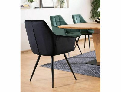 A Lilia Velvet étkezőszék a modern design és a kényelem tökéletes ötvözete. A szék fekete bársony kárpitozása luxus megjelenést kölcsönöz, míg a geometrikus steppelt háttámla egyedi karaktert ad a darabnak. A matt fekete fémlábak stabil alapot biztosítanak és harmonikusan illeszkednek az összképbe. A szék 90 cm magas, 59 cm széles, és 45 cm mély ülőfelülettel rendelkezik.