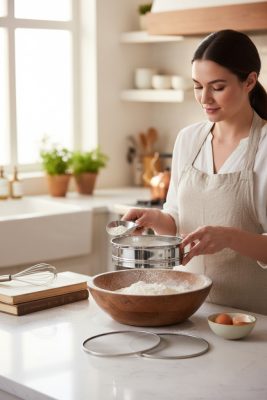 A 21 cm átmérőjű, rozsdamentes lisztszita professzionális konyhai eszköz, amelyet precíz és sokoldalú szitálási feladatokra terveztek. A teljes egészében inox kivitel tartósságot, higiénikus használatot és hosszú élettartamot biztosít.