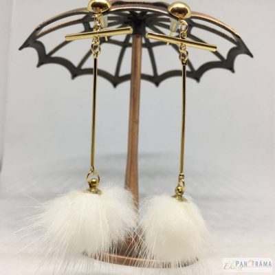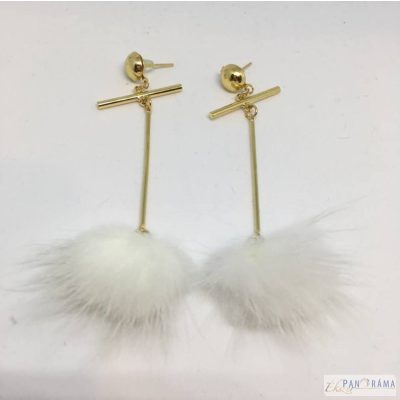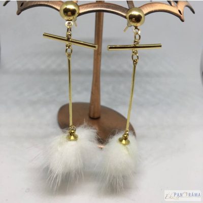 Beszúrós hosszú fülbevaló szőrme bojttal díszítve.