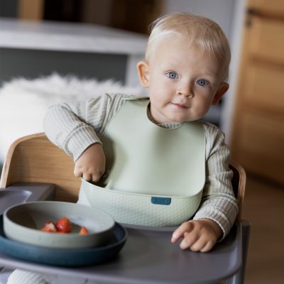 A LOVI szilikon előke zsebbel a szülők kényelmét is szolgálja - védi a pici ruháját a szennyeződésektől, miközben segítséget nyújt az önálló étkezés tanulása során. Könnyű, puha és biztonságos szilikonból készült. A merev és széles zseb felfogja az ételmaradékokat, kényelmesen körülöleli a pocakot, egészen a baba oldaláig nyúlik. Az állítható kapocs és az előke ergonomikus formája követi a gyermek alakját, valamint biztosítja a mozgásszabadságot. Az előke dizájnja egyedülálló a zseb kialakításának köszönhetően, emellett könnyen tisztítható és mosogatógépben mosható.