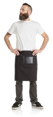 - Vintage stílusú, fekete, erős juta szövet, műbőr betétes borbélykötény