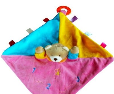 Macis rágókás szundikendő és babjáték élénk színekkel, ajánlott újszülött kortól - lányos