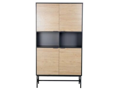 A Mago R1 polcos szekrény tökéletes választás azoknak, akik a modern skandináv stílust ötvöznék a praktikus tárolással. A fekete fém váz és a tölgy színű laminált felületek kontrasztja különleges megjelenést kölcsönöz a bútornak. A bordázott ajtófrontok egyedi karaktert adnak, míg a középen elhelyezett nyitott polcok lehetővé teszik kedvenc tárgyaink dekoratív bemutatását.