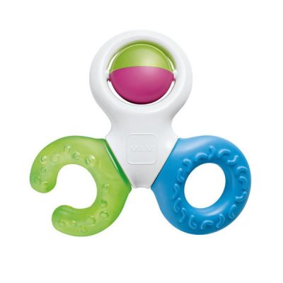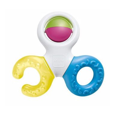 - A különböző felületi szerkezetek és anyagok érdekessé teszik a baba számára a rágókát.