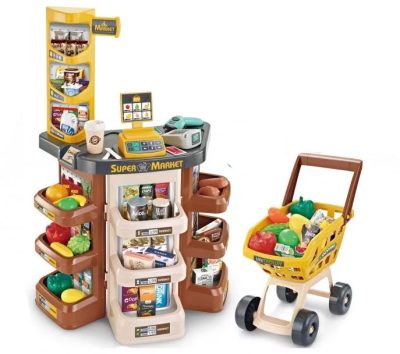 Mama Kiddies 47 részes 79 cm magas szuper shopping set bevásárlókocsival és rengeteg extrával barna színben