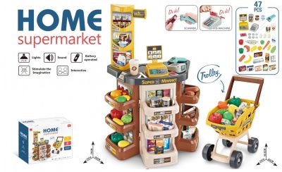 • Mama Kiddies 47 részes 79 cm magas szuper shopping set bevásárlókocsival és rengeteg extrával barna színben