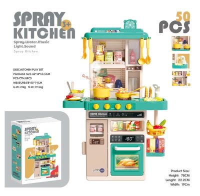 Mama Kiddies 50 részes 78 cm magas Spray Kitchen babakonyha szett türkiz színben