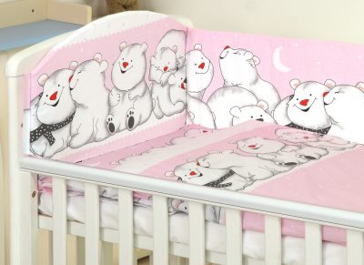 Mama Kiddies Baby Bear 5 részes babaágynemű 180°-os rácsvédővel pink színben jegesmacis mintával