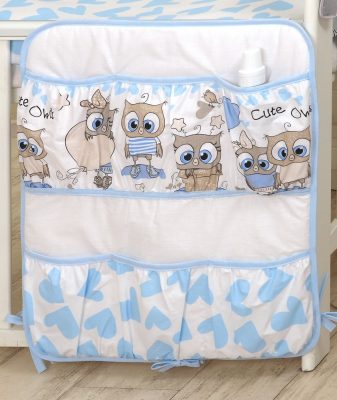 Mama Kiddies Baby Bear zsebes tároló kék-fehér színben baglyos mintával