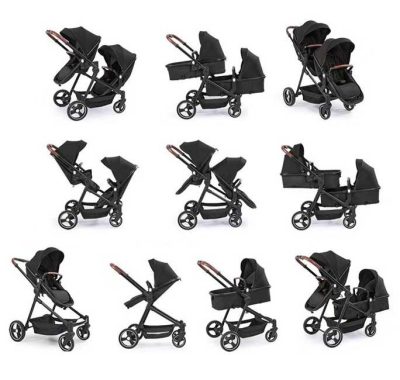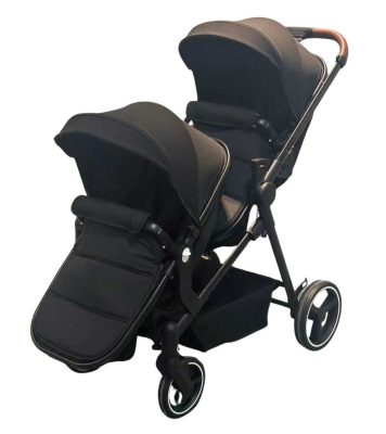 Mama Kiddies Moonlight 2 az 1-ben multifunkciós ikerbabakocsi és testvérbabakocsi fekete színben + Ajándék