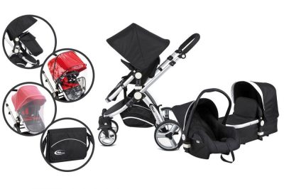 Mama Kiddies Prémium Baby 3 az 1-ben babakocsi kiegészítőkkel fekete-fehér színben + Ajándék