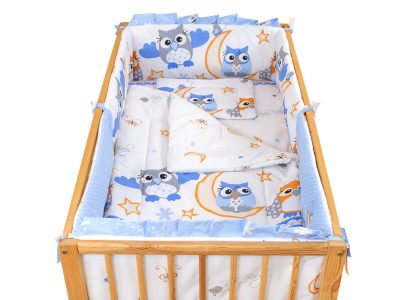 • Mama Kiddies Sofie Dreams 4 részes babaágynemű 180°-os rácsvédővel baglyos mintával világos színben