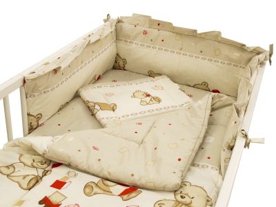 Mama Kiddies Sofie Dreams 4 részes babaágynemű 180°-os rácsvédővel Teddy Toys mintával barna színben