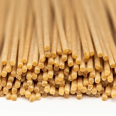 Kör alakú bronz sajtolólemezeket használunk, és a teljes kiőrlésű spagettit min. közötti hőmérsékleten szárítjuk. 36°C és maximum 46°C, 40 órát vesz igénybe.