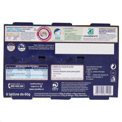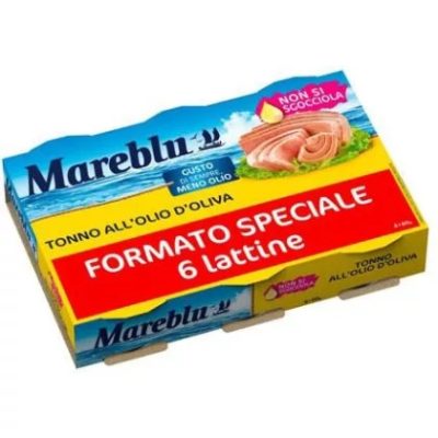 Mareblu tonhal olivaolajban, 360 g. Összetevők: sárgaúszójú tonhal, olivaolaj, só. Átlagos tápérték 100g termékben: Energia: 1020 kJ/ 245 kcal, Zsír: 17 g, ebből telített zsírsavak: 2,6 g, Fehérjék: 23 g, Só: 1 g. Minőségét megőrzi a csomagoláson feltüntetett időpontig. Hűvös, száraz helyen tárolandó. Származási ország: Olaszország. Forgalmazó: Milis Faplusz Kft., 8092 Pátka, Gárdonyi u. 36
