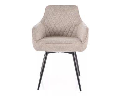 A Marlo Brego étkezőszék ötvözi a modern dizájnt és a funkcionalitást. A rombusz mintás steppelt kárpitozás és a karfás kialakítás elegáns megjelenést kölcsönöz, míg a világos bézs Brego szövet harmonikusan illeszkedik bármilyen enteriőrbe. A szék 180 fokos forgási lehetőséget kínál automatikus visszatérés funkcióval.