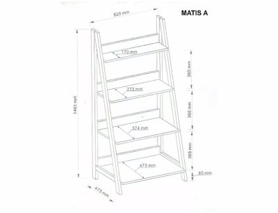 A Matis létrapolcos állvány egy elegáns és sokoldalú bútordarab, amely tökéletesen ötvözi a modern dizájnt a funkcionalitással. A tölgy színű MDF polcok és a sötétbarna fém váz harmonikus kontrasztot alkotnak. A létraszerű kialakítás nem csak stílusos megjelenést kölcsönöz, de praktikus tárolási megoldást is nyújt különböző méretű tárgyak számára.