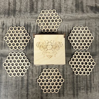 Méhsejtes poháralátétek (6db) méhes dobozban