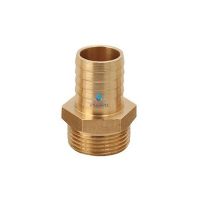 Réz külső menetes csatlakozó idom 30mm tömlővéges csatlakozással.