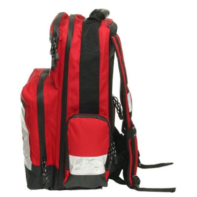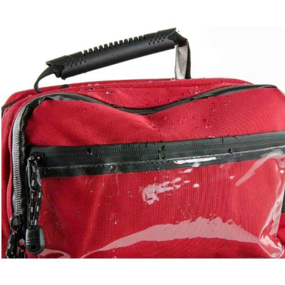 • Piros, üres elsősegély-hátizsák vízálló kivitelben