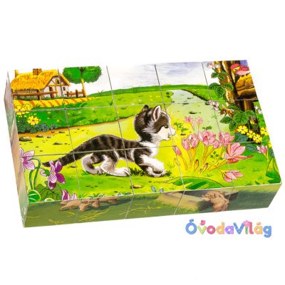 Mesekocka 15 db-os cicás ez az ügyességi játék fejleszti a kreativitást, miközben önfeledt órákat szerez a kicsinek. Rakja össze gyermeke a 15 db kockából álló képet!
