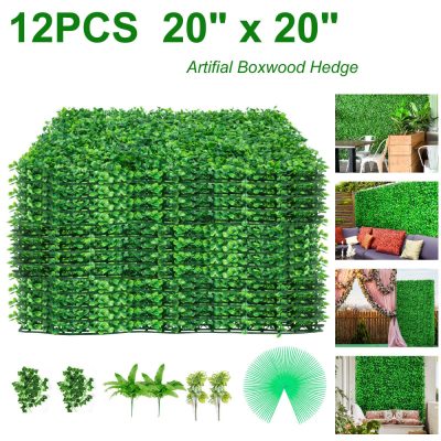 VEVOR Mesterséges sövény 12 db 50,8 x 50,8 cm 100% PE növényfalból 3 m2 fedett terület magánélet sövény 4 cm vastagságú fali dekoráció növények sövény