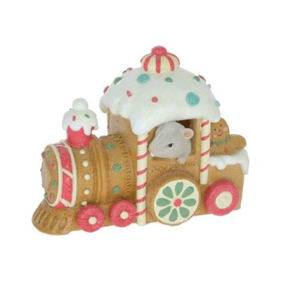 Decorand mézeskalács vonat egérrel Led-es, glitteres, poly, 18x10x15cm