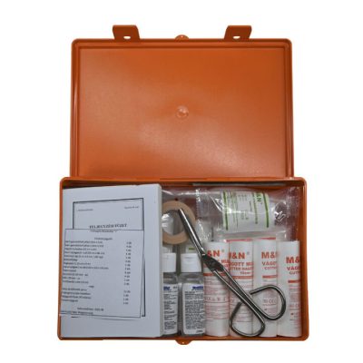MSZ 13553 szabvány által meghatározott tartalmú munkahelyi elsősegély doboz.