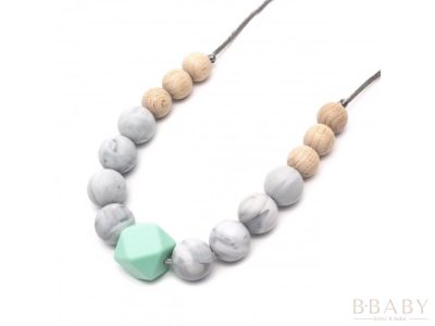 A Grace színösszeállítás (bézs, púder és márványos gyöngyök kombinációja) letisztult, természetes megjelenést biztosít, miközben tökéletesen illeszkedik a baba igényeihez is. A nyaklánc 100% élelmiszeripari szilikonból készült gyöngyei biztonságosan rágcsálhatók – így fogzás idején hatékony megkönnyebbülést nyújtanak.