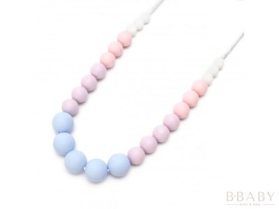 Mimijo szilikon gyöngyös nyaklánc szülőknek – Nessy | Halvány kék és rózsaszín bababarát rágóka nyaklánc