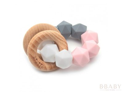 Mimijo szilikon rágóka 2 bükkfa karikával – Tina | Fogzást segítő rágóka és csörgő babáknak