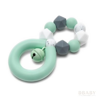 Mimijo szilikon rágóka csörgővel – Menta | Bababarát rágóka és fejlesztő játék fogzáshoz