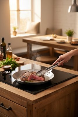 • Ideális steak sütéshez: A serpenyő kialakítása és anyaga tökéletesen alkalmas a tökéletes steak elkészítéséhez. A magas hőmérsékleten történő sütésnek köszönhetően a steak kívül ropogós, belül pedig szaftos marad.
