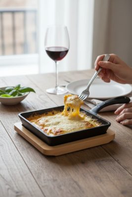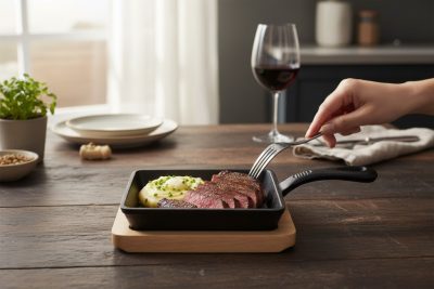 Ez a serpenyő tökéletes választás, ha szeretnéd az ételeket látványosan, mégis praktikusan tálalni. A nagyobb felület lehetővé teszi kreatívabb prezentációt, míg az öntöttvas anyag biztosítja, hogy az étel sokáig meleg maradjon. A fa alátét nemcsak védi az asztalt, hanem prémium megjelenést is kölcsönöz.