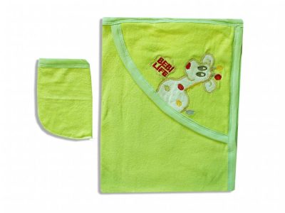 Minőségi nagy méretű hímzett kifogó + Ajándék fürdetőkesztyűvel zöld színben