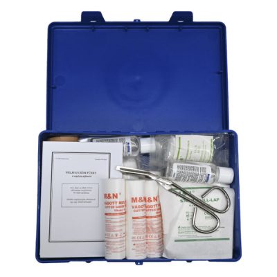 MSZ 13553 szabvány által meghatározott tartalmú munkahelyi elsősegély doboz.