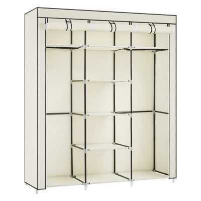 Mobil szövet ruhásszekrény, mobil gardrób, 175x150x45 cm, bézs