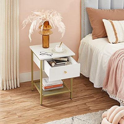 • Stílusos választás: Nézd csak meg az egyszerű fehér színt, a lenyűgöző arany árnyalatot és az elegáns rácsos polcot! Ez a kifinomult design garantáltan elnyeri tetszésedet. Ezzel a sikkes éjjeliszekrénnyel édes álmaid lesznek! Jó éjt!