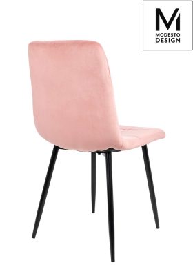 A Modesto Carlo szék tökéletesen ötvözi a modern dizájnt és a funkcionalitást. A púderrózsaszín bársony kárpitozás és a steppelt kialakítás luxus megjelenést kölcsönöz, míg a fekete fémlábak időtlen eleganciát sugároznak. Az ergonomikusan kialakított ülőfelület és háttámla hosszú távú kényelmet biztosít.