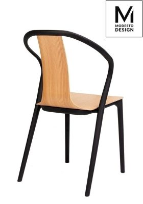 A Vincent szék a Modesto Design kollekció kiemelkedő darabja, amely egyesíti a természetes fa melegségét a modern formavilággal. A rétegelt fa ülőrész és háttámla ergonomikus kialakítása maximális kényelmet biztosít, míg a matt fekete polipropilén váz stabil alapot és időtálló megjelenést kölcsönöz.