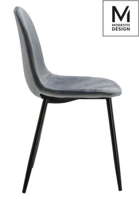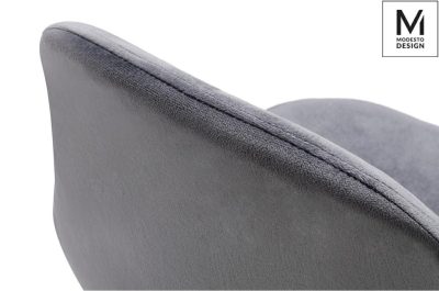 A Modesto Lucy étkezőszék a modern dizájn és a klasszikus elegancia tökéletes ötvözete. A szék puha, szürke bársony kárpitozása nem csak szemet gyönyörködtető, de rendkívül kényelmes is, míg a matt fekete fémlábak stabil alapot biztosítanak.