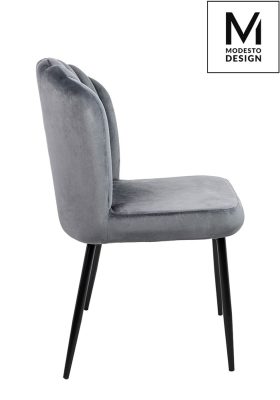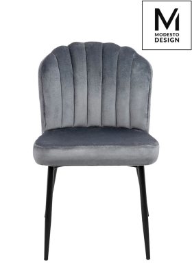 A Modesto Design Rango széke az 50-es évek stílusát idézi modern kivitelezésben. A szék szürke bársonykárpitja és függőleges bordázott háttámlája különleges megjelenést kölcsönöz. A fekete fémlábak és az ergonomikus kialakítás tökéletes egyensúlyt teremt a stílus és a funkcionalitás között.