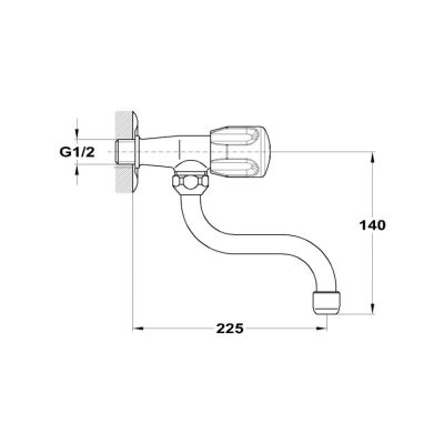 Mofém hidegvizes fali kifolyó csaptelep forgatható 200 mm-es alsó kifolyócsővel, leeresztő szelep nélkül, hagyományos felsőrésszel. Hagyományos felsőrészeinkben súrlódásmentes gumigyűrűk végzik a vezérlést. A felsőrész konstrukciójából adódóan állandó kenést biztosít. A kenőanyag nem oldódik ki a vízben és élő szervezetre ártalmatlan.