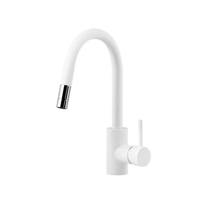 MOFÉM Evo-X egykaros álló mosogató csaptelep kihúzható fejjel matt fehér színben
