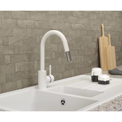 • MOFÉM Evo-X egykaros álló mosogató csaptelep kihúzható fejjel matt fehér színben