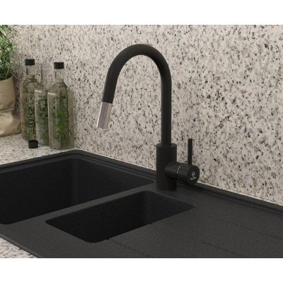 • MOFÉM Evo-X egykaros álló mosogató csaptelep kihúzható fejjel matt fekete színben